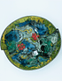 Forma abierta decorada en su interior a pincel con engobes de porcelana. Motivos de inspiración orgánica.