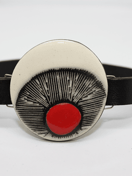 Elaborada con cerámica, cuero natural y acero inoxidable.